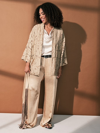 Zuletzt, aber sicher nicht weniger wichtig: Vergessen Sie die Accessoires nicht! Ein einfacher Gürtel oder ein in der Taille getragener Foulard kann Ihnen helfen, all den Lagen, die Sie kreiert haben, einen Sinn zu geben – vor allem, wenn Sie weiche oder Oversize-Teile wählen, die vielleicht leicht gerafft werden müssen, wenn Sie den Tunika-Effekt nicht mögen, sozusagen.